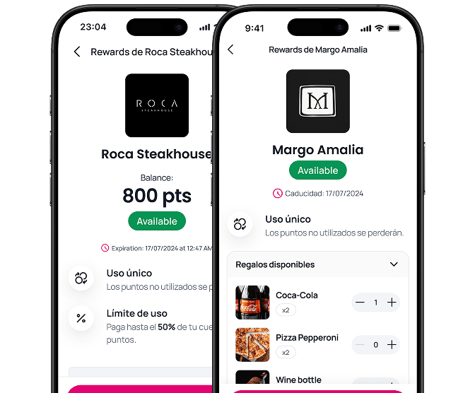 Puntos: Otorga puntos de consumo. Regalos: Ofrece platillos, productos o cortesías.
